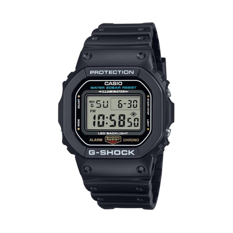 - Color options: The G-Shock comes in all kinds of different colors and shapes, but the DW-5600E-1V model offers a nice, clean rectangular shape and simple black resin.