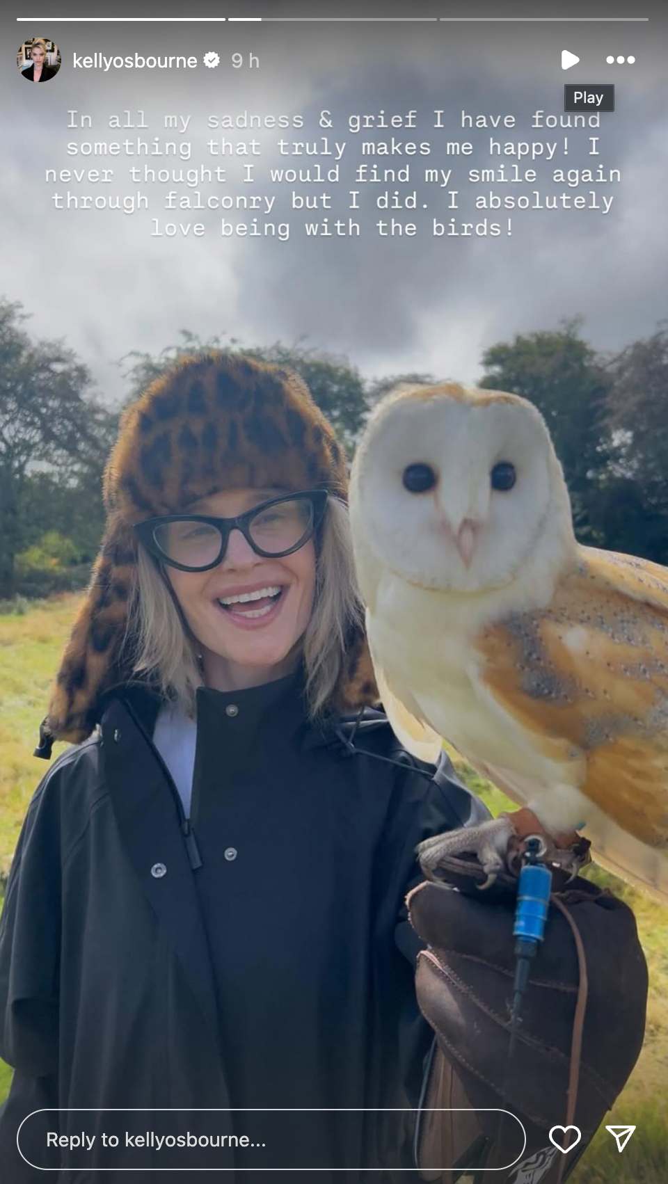 “In all my sadness and grief, I have found something that truly makes me happy! I never thought I would find my smile again through falconry, but I did,” she wrote.