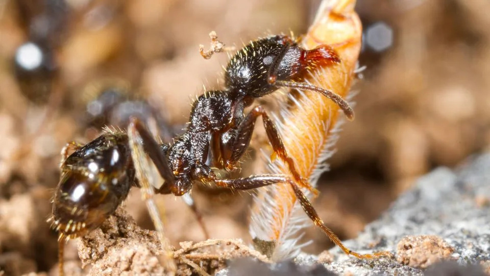 A Messor structor worker ant carries a seed to its nest in France. – Richard Becker/Alamy Stock Photo